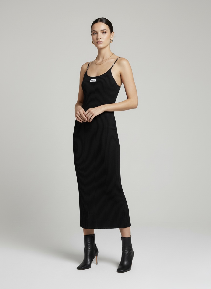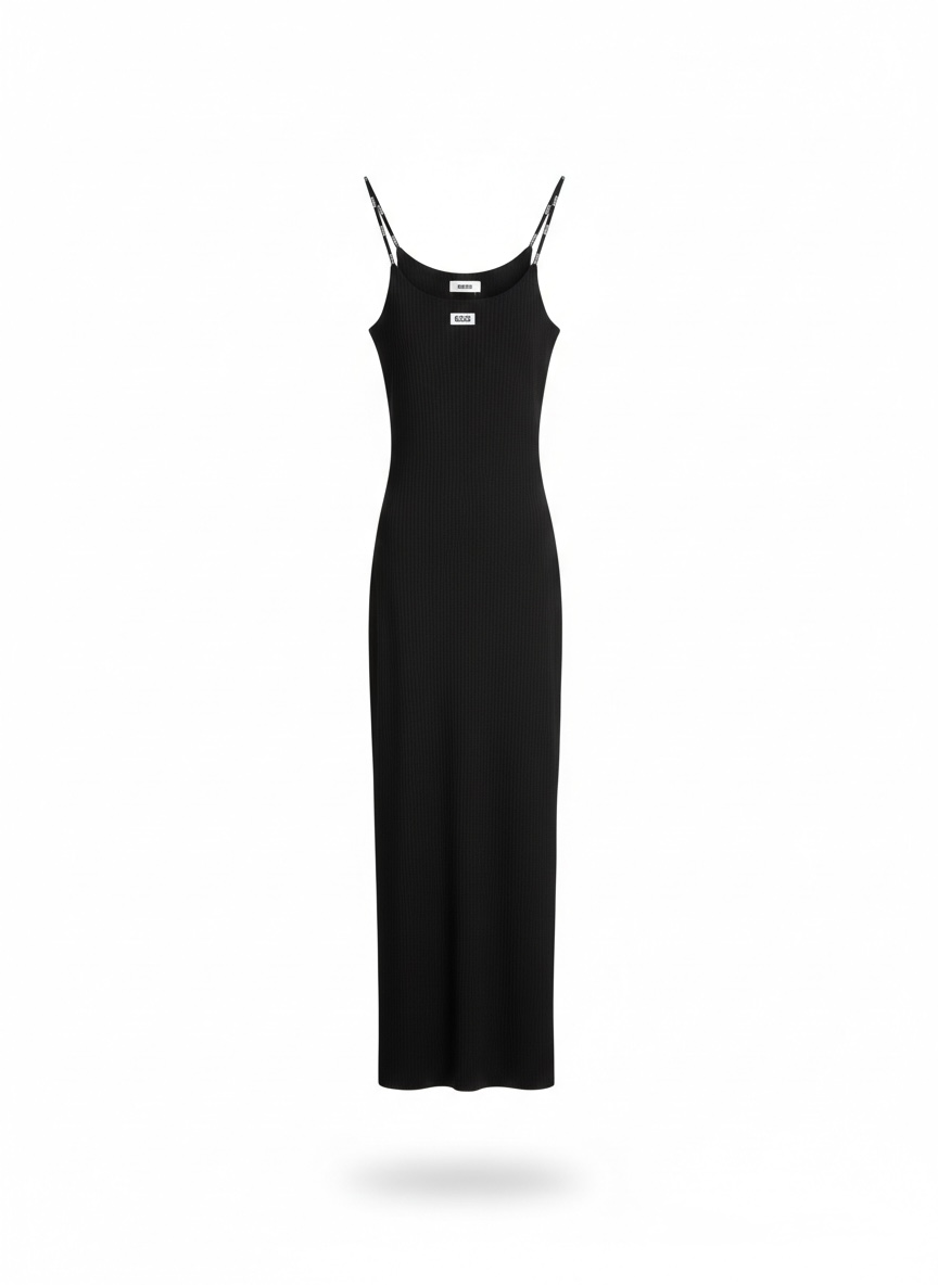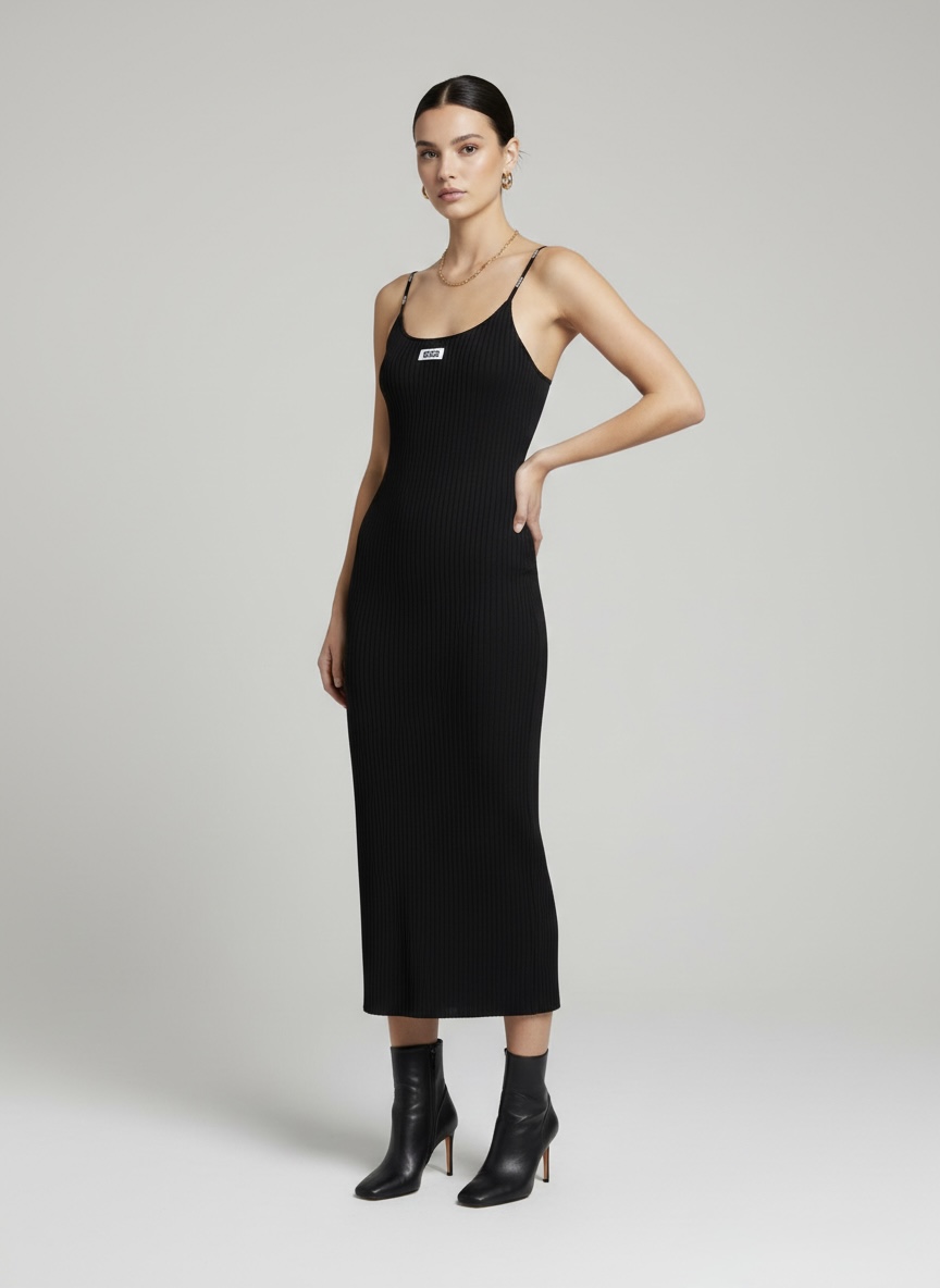GCDS: Abito Midi Ribbed con Spalline Logate – Black