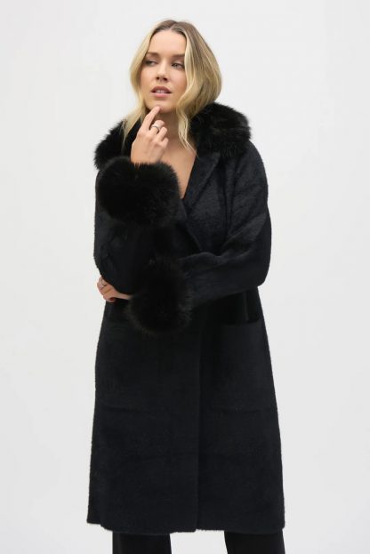 Vivi un comfort ed eleganza senza pari con il cappotto Joseph Ribkoff in filato piuma con bordatura in pelliccia sintetica, modello 243923. Realizzato in morbido filato piuma di lusso e impreziosito da bordature in pelliccia sintetica su colletto e polsini, questo cappotto maglia offre la combinazione perfetta di calore e raffinatezza. Il suo design versatile lo rende ideale sia per occasioni casual che raffinate, assicurandoti di rimanere al caldo senza rinunciare allo stile.