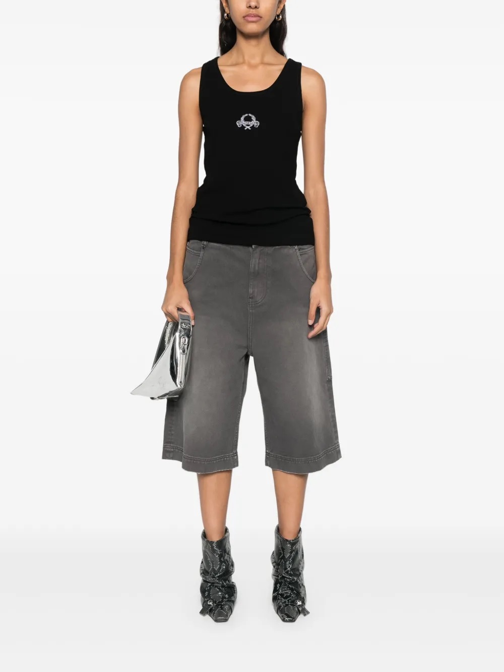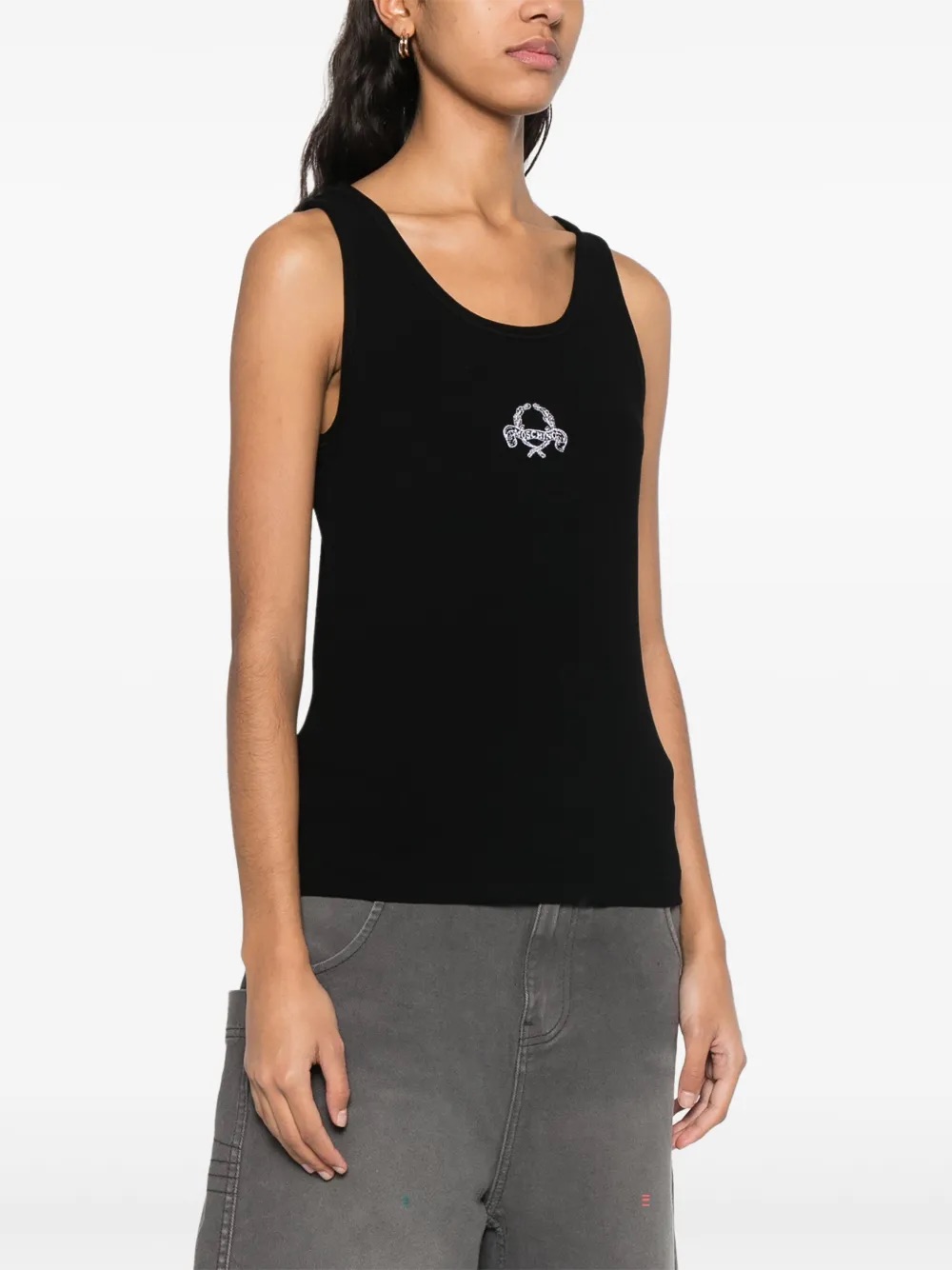 Canotta con ricamo di Moschino nera